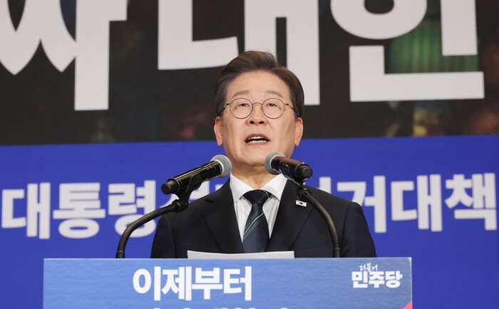 ▲ 더불어민주당 이재명 대선 후보가 30일 서울 여의도 국회 의원회관에서 열린 더불어민주당 제21대 대통령선거 '진짜 대한민국' 중앙선거대책위원회 출범식에서 연설하고 있다.[사진=연합뉴스] |