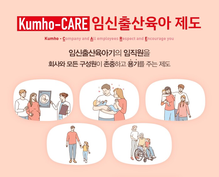 [메가경제=장준형 기자] 금호석유화학그룹(회장 박찬구)은 새해 첫 주부터 임신출산육아기 및 장애우 가족을 부양하는 임직원을 대상으로 신규 복지 제도 'Kumho-CARE'(이하 ‘금호케어’)를 실시한다고 3일 밝혔다.