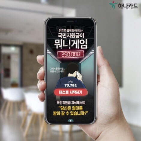 하나카드가 이달 6일 부터 시작되는 국민지원금 신청과 관련해 안내 서비스 사이트를 오픈했다. 하루새 7만명이 접속할 정도로 인기다.