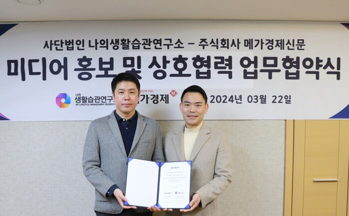 양사는 이날 서울 마포구 메가경제신문 본사 회의실에서 김진오 메가경제신문 대표와 이창현 나의생활습관연구소 소장이 참석한 가운데 업무협약식을 가졌다.