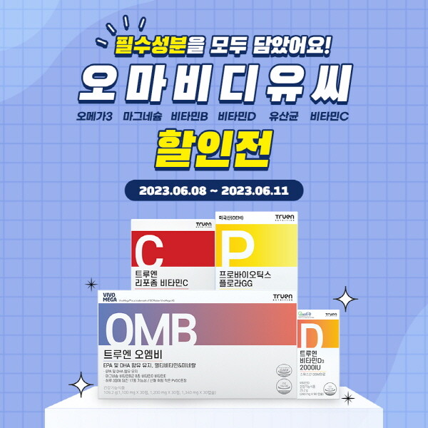 트루엔 오엠비와 트루엔 비타민D3 2000IU, 트루엔 프로바이오틱스 플로라GG, 트루엔 리포좀 비타민C로 이뤄진 '오마비디유씨' 구성이다.