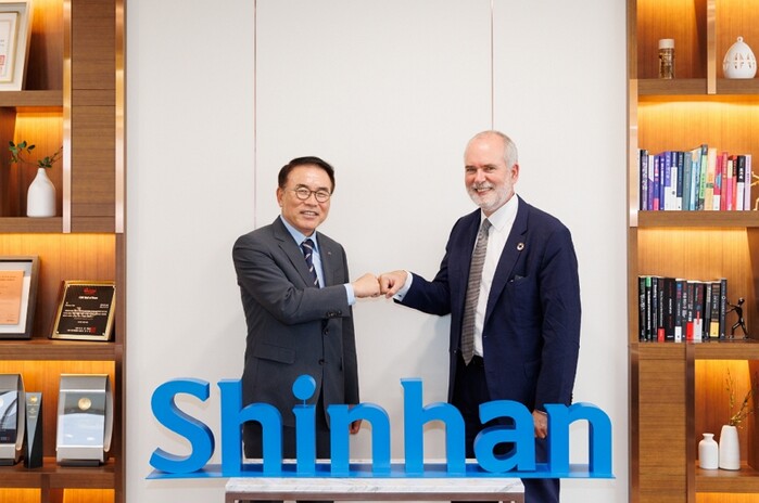 | ▲ 신한금융그룹(회장 조용병)은 10일 오전 서울 중구에 위치한 신한금융 본사에서 토마스 앙커 크리스텐센 (Tomas Anker Christensen) 덴마크 기후대사 및 아이너 옌센 (Einar H.Jensen) 주한덴마크대사와 만나 탄소중립과 산업 발전을 함께 도모하는 녹색성장을 위한 금융의 역할에 대해 논의하고 기념촬영을 하고 있다. 신한금융그룹 조용병 회장(왼쪽), 토마스 앙커 크리스텐센 (Tomas Anker Christensen) 덴마크 기후대사(오른쪽) |