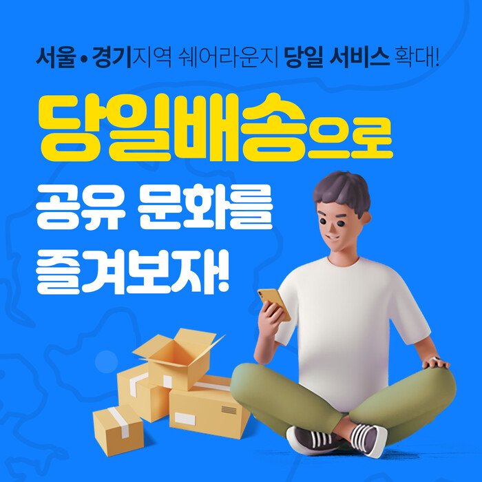 ▲공유 플랫폼 쉐어라운지는 당일에 물건을 공유할 수 있는 서비스 제공 지역을 서울, 경기 지역으로 늘렸다. |