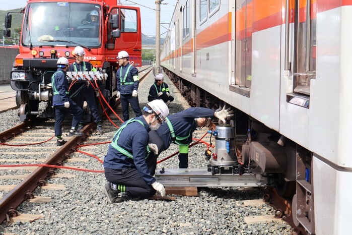 | ▲23일 오후, 1호선 노포차량기지에서 진행된 부산교통공사 ‘2024년 충무훈련 - 도시철도 피해복구 실제훈련’ 현장 |