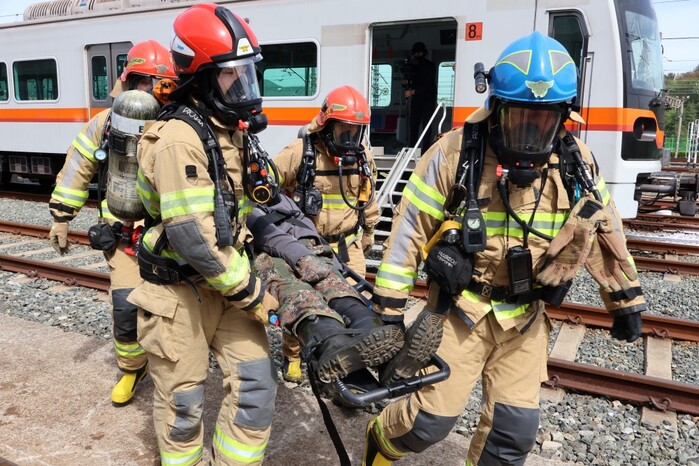 이어서 진행된 훈련에서는 운행 중 열차 내 원인 불명의 폭발로 인한 긴급 사태를 설정했다. 이에 따라 탈선, 화재, 다수 사상자 발생 등 위급 상황을 모의하며 △초기 상황 전파 및 대응 △인명 구조 및 응급의료 지원 △현장 통제 및 복구 지휘체계 가동 등 전 과정이 매뉴얼에 따라 신속하게 이뤄졌다.