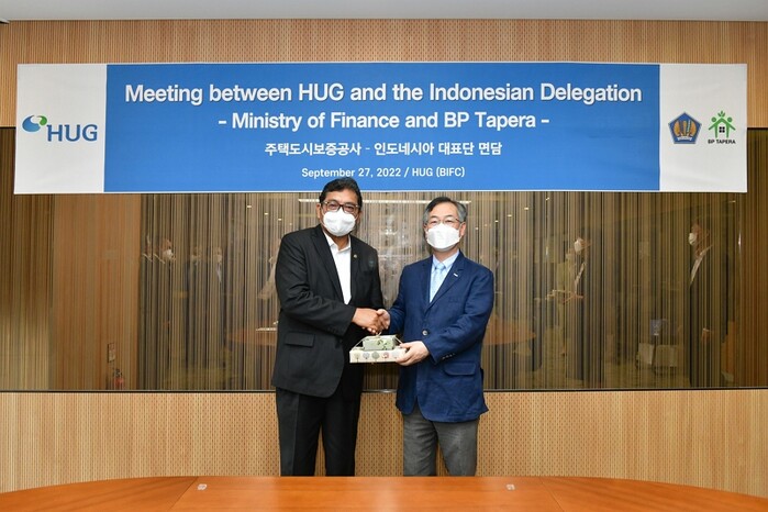 주택도시보증공사(사장 권형택)는 인도네시아 재무부 및 BP Tapera(공공주택청약저축관리청) 대표단에 주택분양보증 제도와 주택도시기금 운용 노하우를 전수하고 협력방안을 논의하기 위해 27일 면담을 가졌다고 밝혔다.