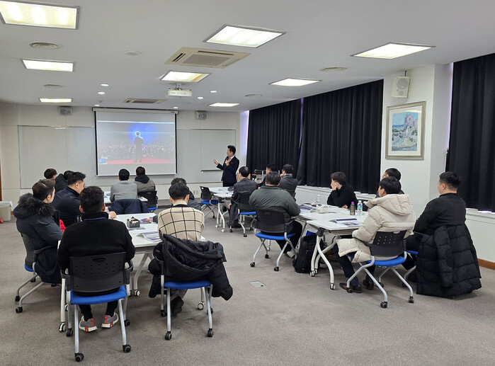 | ▲ 오토매니저들이 워크숍을 통해 상호 교류하며 강의를 경청하고 있는 모습 [사진=KG모빌리티] |
