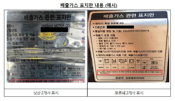 일반적인 운전조건에서 닛산 차량은 질소산화물이 허용기준(0.18g/km)의 5.2~10.64배가 배출됐으며, 포르쉐 차량은 허용기준(0.08g/km 또는 0.08g/km)의 1.3~1.6배 수준으로 나타났다.