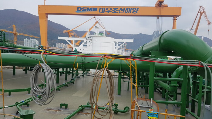▲ 대우조선해양 도크에서 건조중인 VLCC선박 [메가경제신문 DB] |