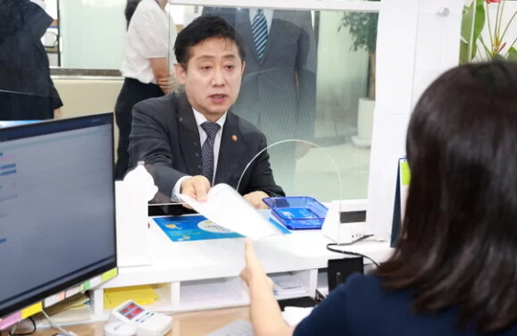 ▲ 김주현 금융위원장이 7일 오전 사직동 새마을금고 본점을 방문해 6000만원을 예금하고 있다. [사진=금융위원회] |