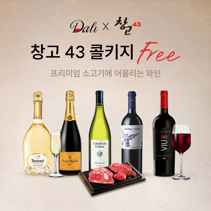 창고43은 주류 스마트 오더 앱 '달리'와 손잡고 고객이 원하는 와인을 배송받아 와인의 온도관리와 와인택 서비스 등을 제공하는 '딜리버리 와인 콜키지 프리 서비스'를 시행한다고 7일 밝혔다.