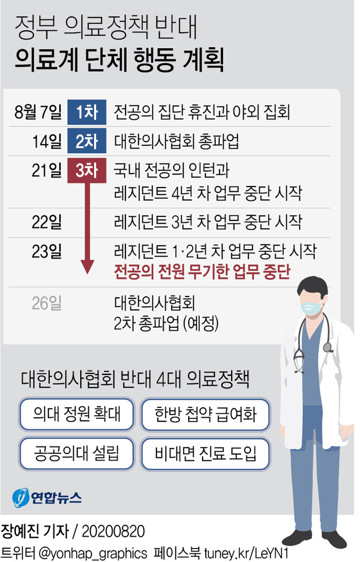 ▲ 정부 의료정책 반대 의료계 단체 행동계획.[출처= 연합뉴스] |