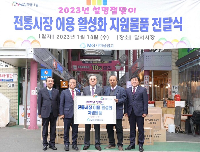 [메가경제=황동현 기자] 새마을금고가 설 명절을 맞이해 명절 대목을 앞둔 전통시장의 이용활성화를 위한 지원에 나섰다. 박차훈 새마을금고중앙회장은 전통시장인 대구 달서시장을 찾아 지역 상생과 ESG경영 추진에 더욱 힘쓰겠다는 의지를 피력했다.
