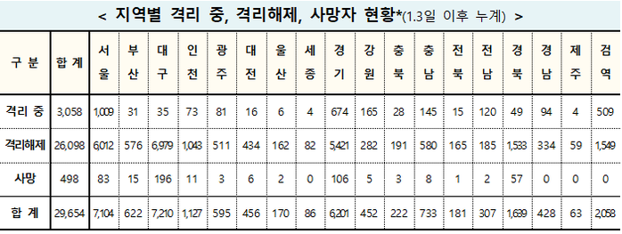 ▲ 19일 0시 기준 격리해제 및 사망자 현황. [출처= 중앙방역대책본부] |