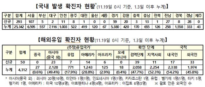 지역발생 293명은 8월 29일(308명) 이후 82일만에 최다 확진자 수다.