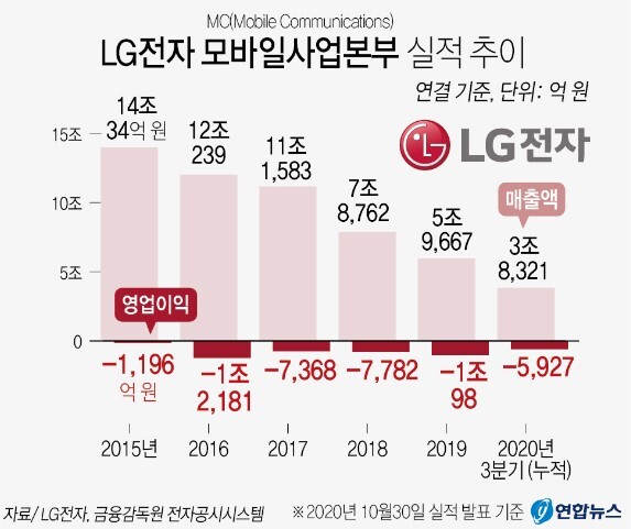 이 결과 적자 수준이 2019년 1조원에서 2020년 8000억원대로 줄어들고 있으나 스마트폰 판매량이 매년 줄어들면서 매각 가능성까지 검토하게 된 것으로 보인다.
