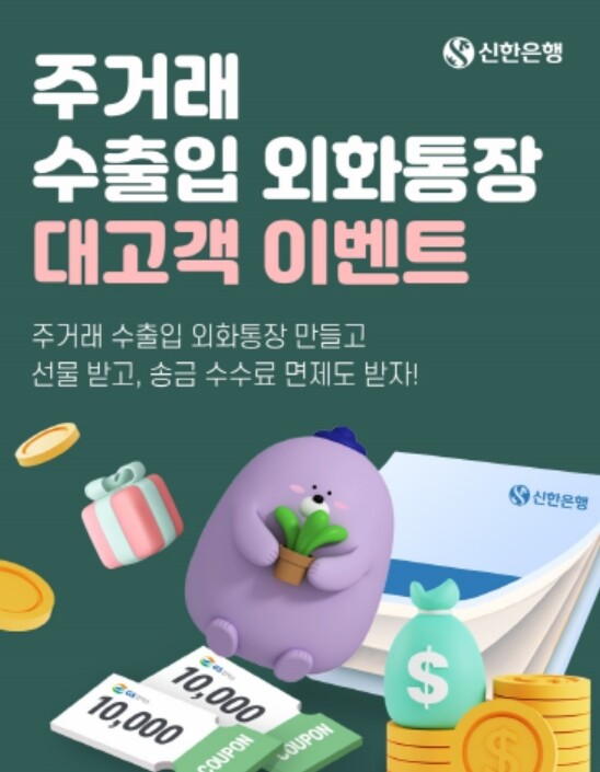 신한은행(은행장 진옥동)은 외화통장 모바일 채널 가입 대상을 법인까지 확대한 기념으로 대고객 이벤트를 시행한다고 1일 밝혔다.