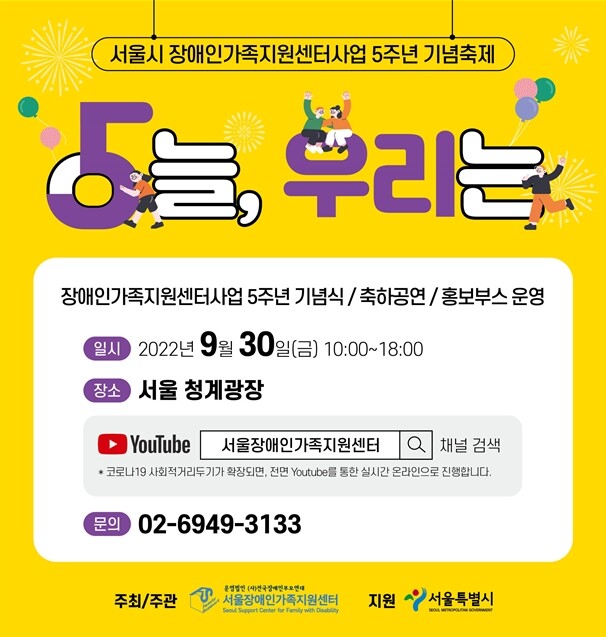 장애인문화예술축제 ‘오(5)늘 우리는’은 유튜브 채널(서울장애인가족지원센터)을 통해 행사 참여 및 공연을 함께 즐길 수 있다.