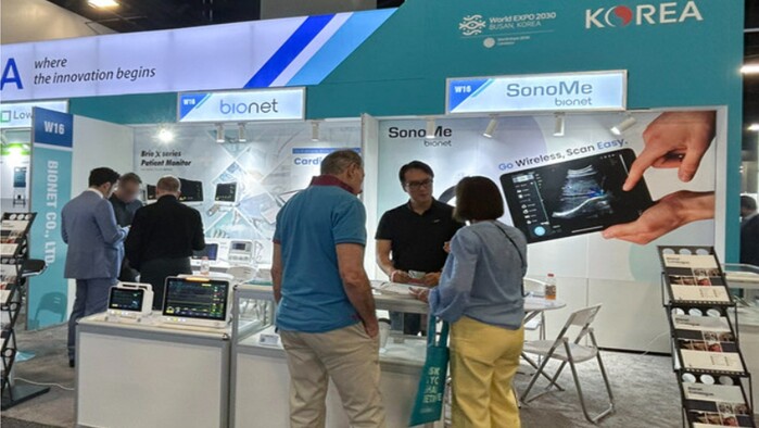 이번 전시에서 바이오넷은 한국관 W16에 부스를 마련해 FDA 승인을 받은 무선초음파 SonoMe(소노미)와 환자감시장치 Brio X Series(브리오 엑스 시리즈), 심전도기 Cardio Q Series(카디오 큐 시리즈), 동물용 ECG 센서 VEMO Plus(베모 플러스) 등을 소개했다.