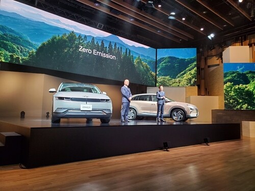 장재훈 현대차 사장은 이날 영상메시지를 통해 일본어로 “일본 시장에서 수소차, 전기자동차 등 무공해차로 탈탄소화 실현에 도움이 되고 싶다”고 말했다.