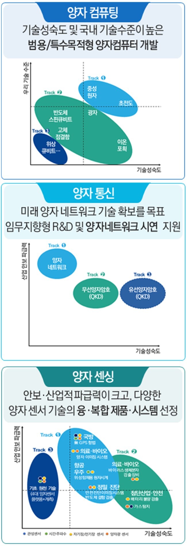 양자컴퓨팅은 여러 기술방식이 경쟁 중임을 감안해 다양한 혁신 가능성을 열어두고 지원하되, 기술 성숙도 및 비교 우위 등의 변화와 발전을 수시로 점검함으로써 선택과 집중을 강화한다는 방침이다.