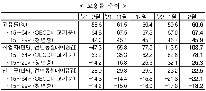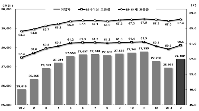 2월 기준으로 보면 2000년(136만2천명) 이후 22년만에 최대 증가폭을 기록했다.