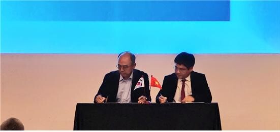 | ▲ 위정현 한국게임학회장(왼쪽)과 당 화이 박 베트남 PTIT 총장(오른쪽)이 2일 게임 교육을 위한 MOU를 체결했다.[사진=한국게임학회] |