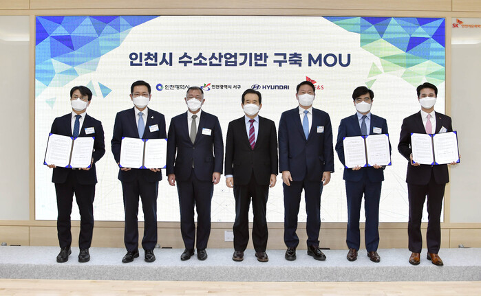 한편 이 날 현대차그룹과 SK그룹은 간담회 이후 인천광역시, 인천서구청과 인천광역시 수소 사업 기반 구축을 위한 업무 협약을 체결하고, 양 그룹 경영진은 수소경제위원들과 SK인천석유화학 내 수소액화플랜트 예정지와 석유화학 공장 등을 둘러봤다.