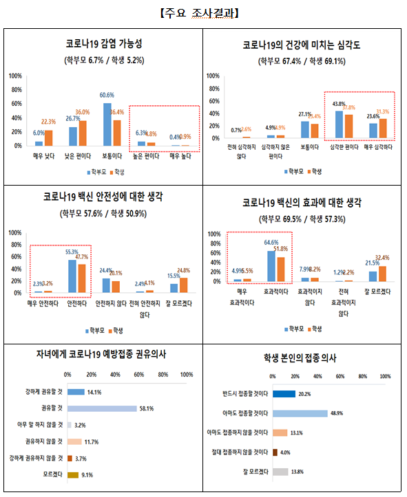 초6~고2 학부모 72.2%, 학생 69.1% "백신 접종 의향 있어"