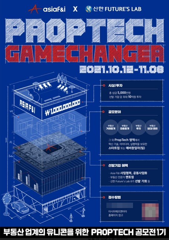신한퓨처스랩이 아시아에프앤아이와 손잡고 프롭테크(Proptech) 영역에서 유니콘으로 성장할 스타트업을 발굴한다.