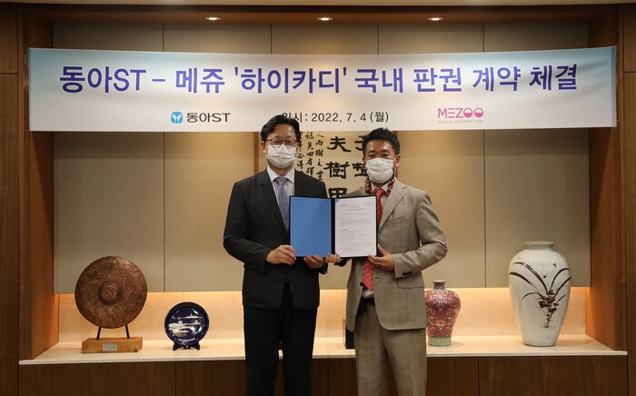 동아에스티는 지난 4일 서울 동대문구 용두동 본사에서 메쥬와 심전도 원격 모니터링 플랫폼 '하이카디(HiCardi)'의 국내 판권 계약을 맺었다고 5일 밝혔다.