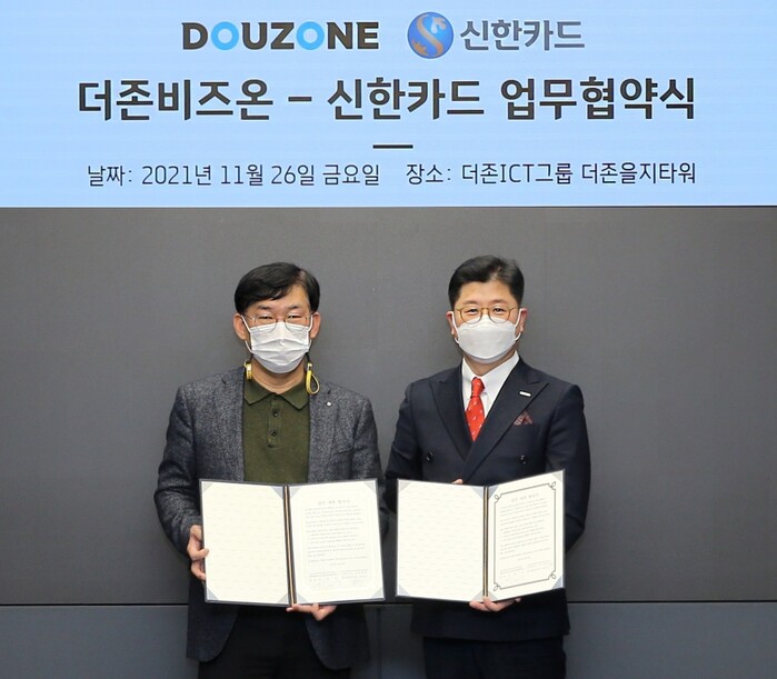 신한카드(사장 임영진)는 더존비즈온(대표 김용우)과 법인카드 회원을 확대하고 다양한 마케팅을 전개하기 위한 업무협약을 체결했다고 28일 밝혔다.