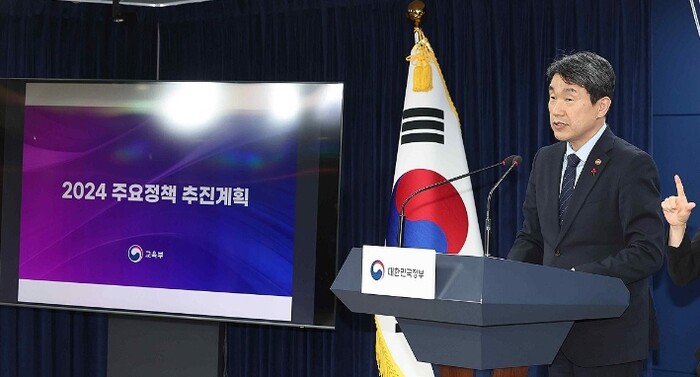 | ▲이주호 사회부총리 겸 교육부 장관이 지난 24일 2024년 교육부 주요 정책 추진계획을 브리핑하고 있다. |