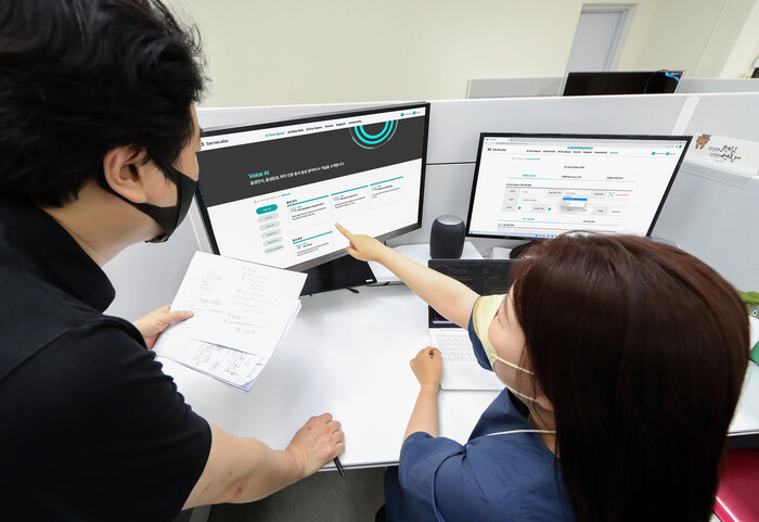 | ▲ KT 직원들이 지니랩스 홈페이지를 둘러보는 모습 [KT 제공] |