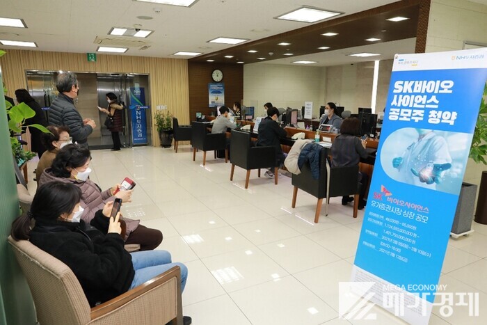 ▲ SK바이오사이언스 일반공모가 진행중인 NH투자증권 영업점 [사진=NH투자증권 제공] |