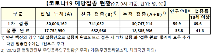 ▲ 7일 0시 기준 누적 접종현황. [출처=질병관리청] |