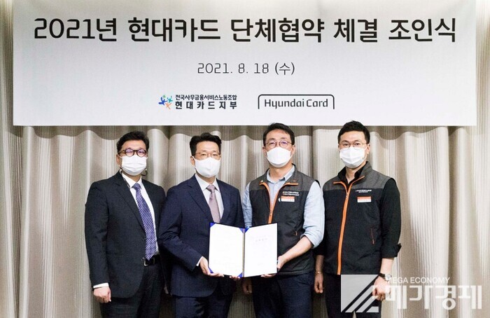 현대카드와 전국사무금융서비스노동조합 현대카드지부(이하 현대카드 노동조합)는 18일 서울 여의도 글래드호텔에서 ‘2021년 현대카드 단체협약 체결 조인식’을 진행했다고 밝혔다.
