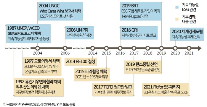 ▲ 글로벌 ESG, 기후변화 대응 관련 주요 이벤트 타임라인 [자료=KB금융그룹] |