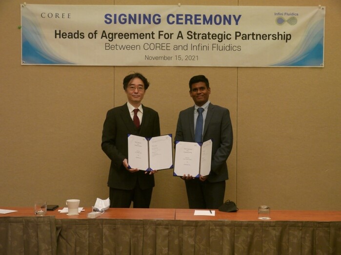 한미사이언스 컨소시엄 코리컴퍼니는 인피니플루딕스와 mRNA 백신 약물전달체(LNP 구조체) 생산 공정인 미세유체 공정 분야의 새로운 공법 개발을 위한 전략적 파트너십 기본합의서를 체결했다고 18일 밝혔다.