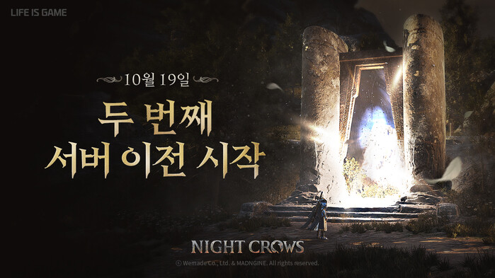 [메가경제=이준 기자] 위메이드(대표 장현국)가 서비스하고 매드엔진(공동대표 손면석, 이정욱)에서 개발한 대작 MMORPG '나이트 크로우'가 19일 두 번째 서버 이전을 실시한다.
