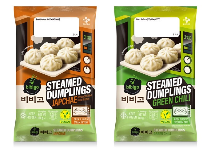 이번 신제품은 잡채와 청양고추가 각각 들어간 비비고 찐만두 2종이다. 전자레인지에 조리하기 편하도록 트레이에 담은 형태로 만들었다.