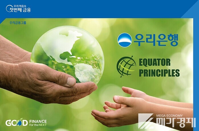 우리금융지주의 자회사 우리은행(은행장 권광석)은 지난 18일 환경·사회적 리스크 관리체계 구축 및 글로벌 금융기관으로서의 책임이행을 통한 ESG경영 강화를 위해 적도원칙(Equator Principles)에 가입했다고 20일 밝혔다.