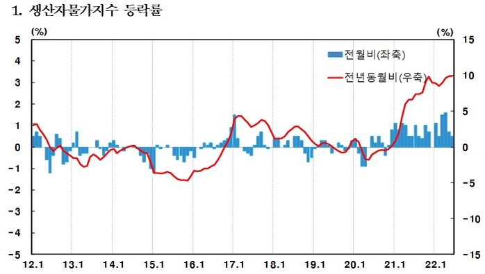 ▲ 생산자물가지수 등락률. [한국은행 제공] |