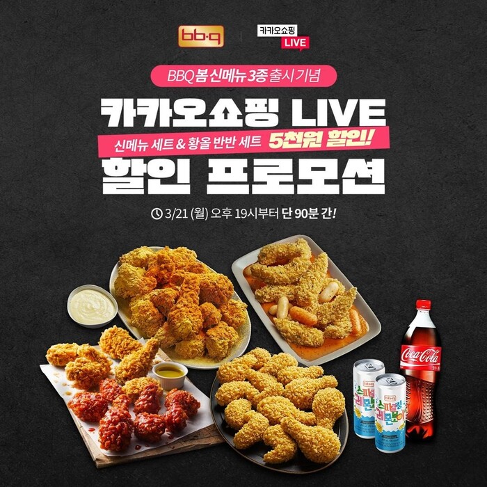 | ▲ BBQ 신메뉴 3종 출시 기념 카카오쇼핑 라이브 5000원 할인 프로모션 포스터 [제너시스 비비큐 제공] |