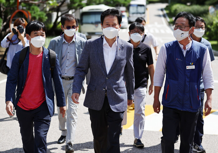 ▲ 권정오 전교조 위원장을 비롯한 참석자들이 3일 오전 서울 서초구 대법원에서 열리는 전원합의체에 참석하기 위해 법정으로 향하고 있다. [사진=연합뉴스] |