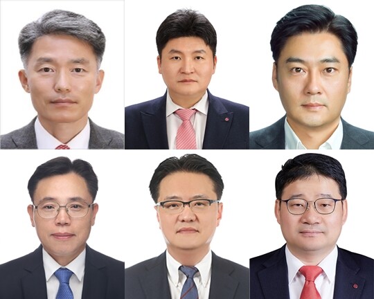 | ▲ (왼쪽부터 시계방향) LG화학 선우지홍 전무, 송병근 전무, 이화영 전무, 박희술 전무, 최영민 전무, 김동춘 전무 |