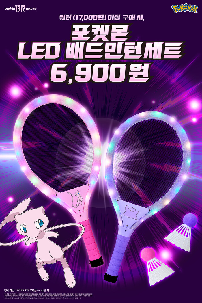 SPC그룹의 배스킨라빈스가 글로벌 인기 콘텐츠 포켓몬스터와 손잡고 ‘포켓몬 LED 배드민턴 세트’를 출시한다고 5일 밝혔다.