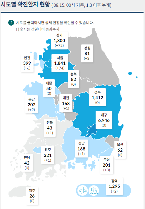 ▲ 시도별 확진환자 현황. [출처= 중앙방역대책본부]