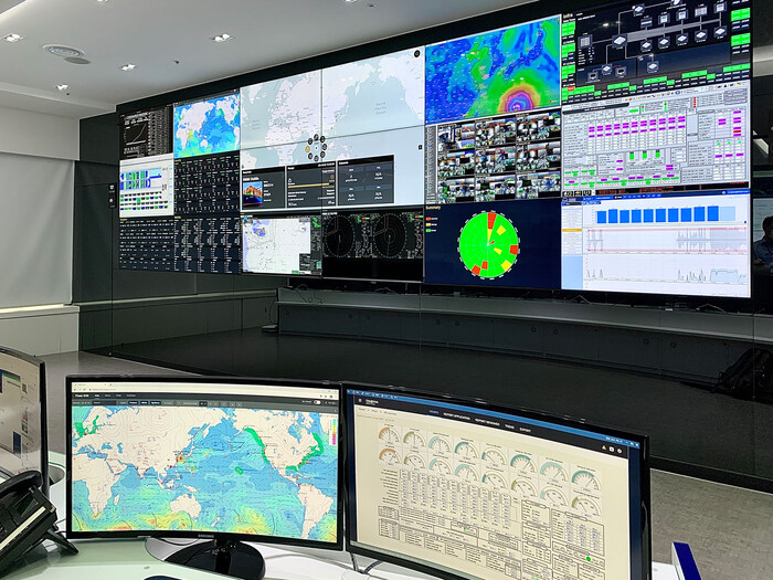 우선 종합상황실에서는 선박의 위치는 물론 ▲입출항 정보 ▲연료 소모량 ▲태풍 등 기상 상황 ▲화물 적재 현황 등을 실시간으로 파악할 수 있으며, 위험요소 사전 식별 및 관리, 주요 정보 공유 등을 통해 선박의 효율성 향상과 안전 운항을 지원한다. 상황에 따라 선박의 승인 시, 육상에서 운항중인 선박의 컨트롤도 가능하다.