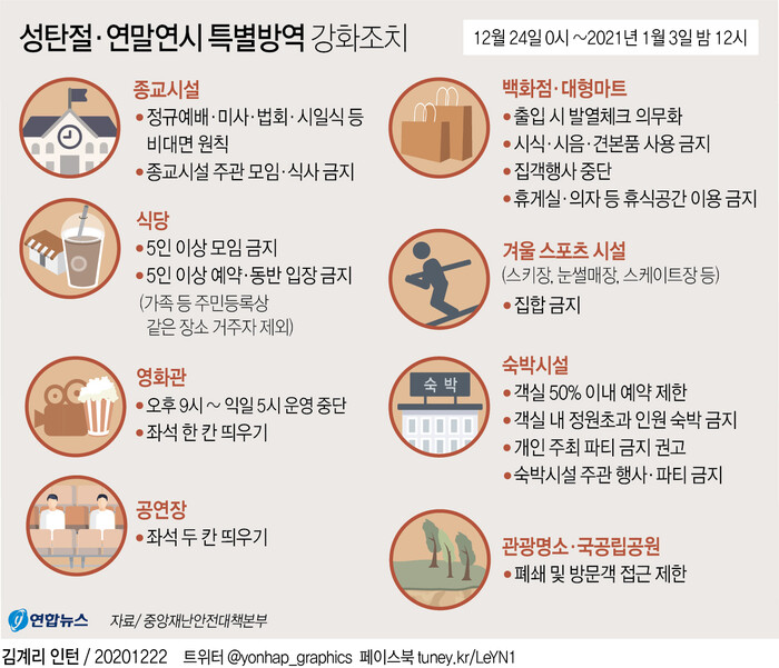 ▲ 성탄절 연말연시 특별방역 강화조치. [그래픽= 연합뉴스] |